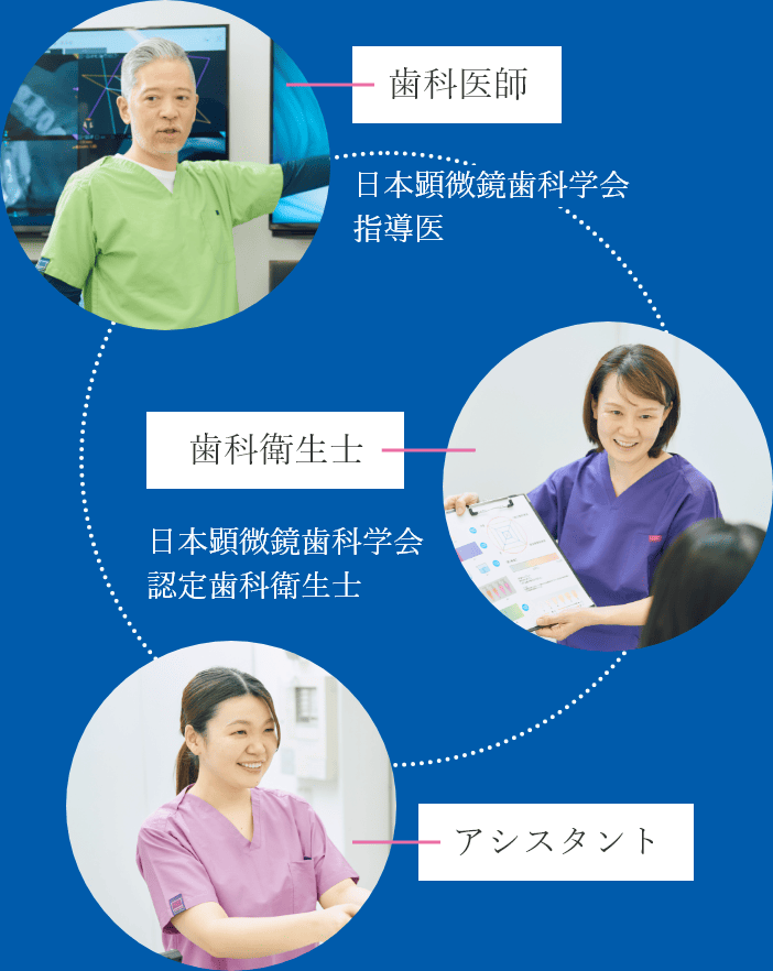 当院在籍の歯科衛生士3名が、マイクロスコープのスペシャリストとして認められた歯科衛生士に与えられる、日本顕微鏡学会認定歯科衛生士の資格を取得しています。さらに、その上位資格である日本顕微鏡歯科学会指導歯科衛生士も1名在籍しています。当院では、マイクロスコープの資格取得を歯科衛生士にも義務付け、精密な診療をご提供するために日々研鑽を積んでいます。