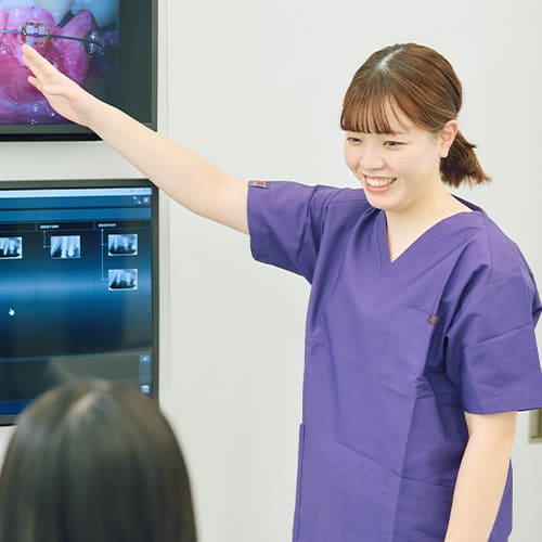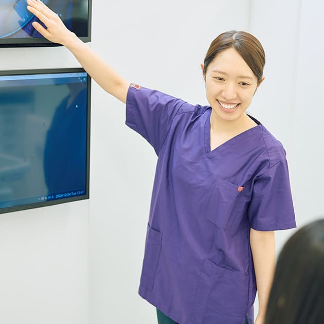 それぞれのスタッフが専門性を磨き、様々な状況にオールマイティに対応します。歯が痛い・しみるといった初期症状はもちろん難症例の治療まで、患者さんのさまざまなお悩みに対応可能です。どんなことでもご相談ください。