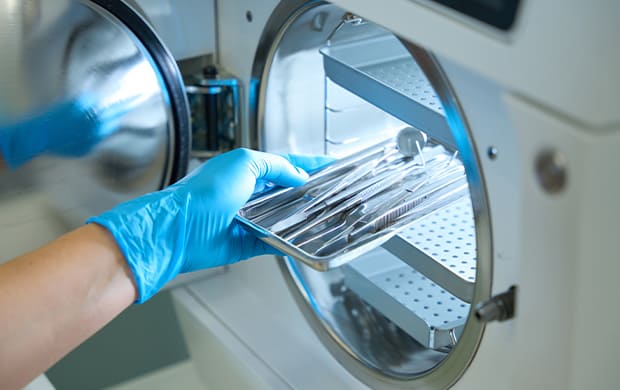 世界基準を満たした滅菌器により、治療に使用した器具を徹底的に滅菌・消毒しています。さらに、口腔外バキュームや業務用空気清浄機などを使用して、院内の空気も清潔に保っています。患者さんが口にし、治療にも使用する水にもこだわるなど、当院はさまざまな面での衛生管理を徹底しています。