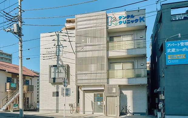 川口元郷の歯医者 「デンタルクリニックK」は、埼玉高速鉄道「川口元郷駅」2番出口より徒歩5分の場所にあります。6台分の専用駐車場も完備しているので、車でも通院いただけます。当院は治療後も長期的に健康を保つための予防を重視し、皆さんが通院しやすい環境を整えています。