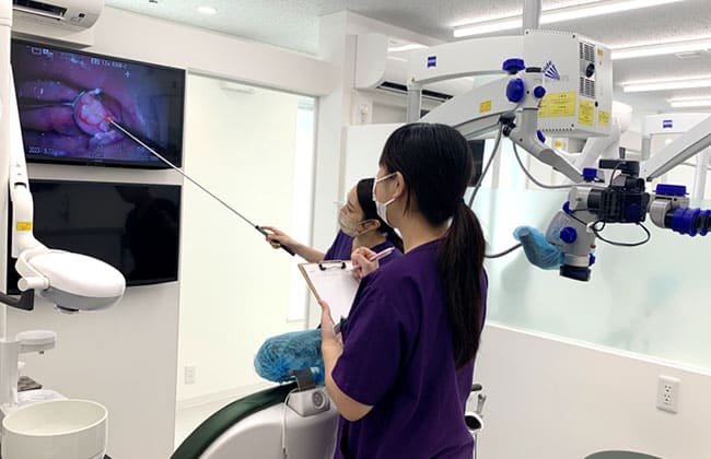 また、情報共有のミーティングを毎週実施し、月に1度の症例検討ミーティングを実施するなど、マイクロスコープについての研鑽を医院全体で積んでいます。